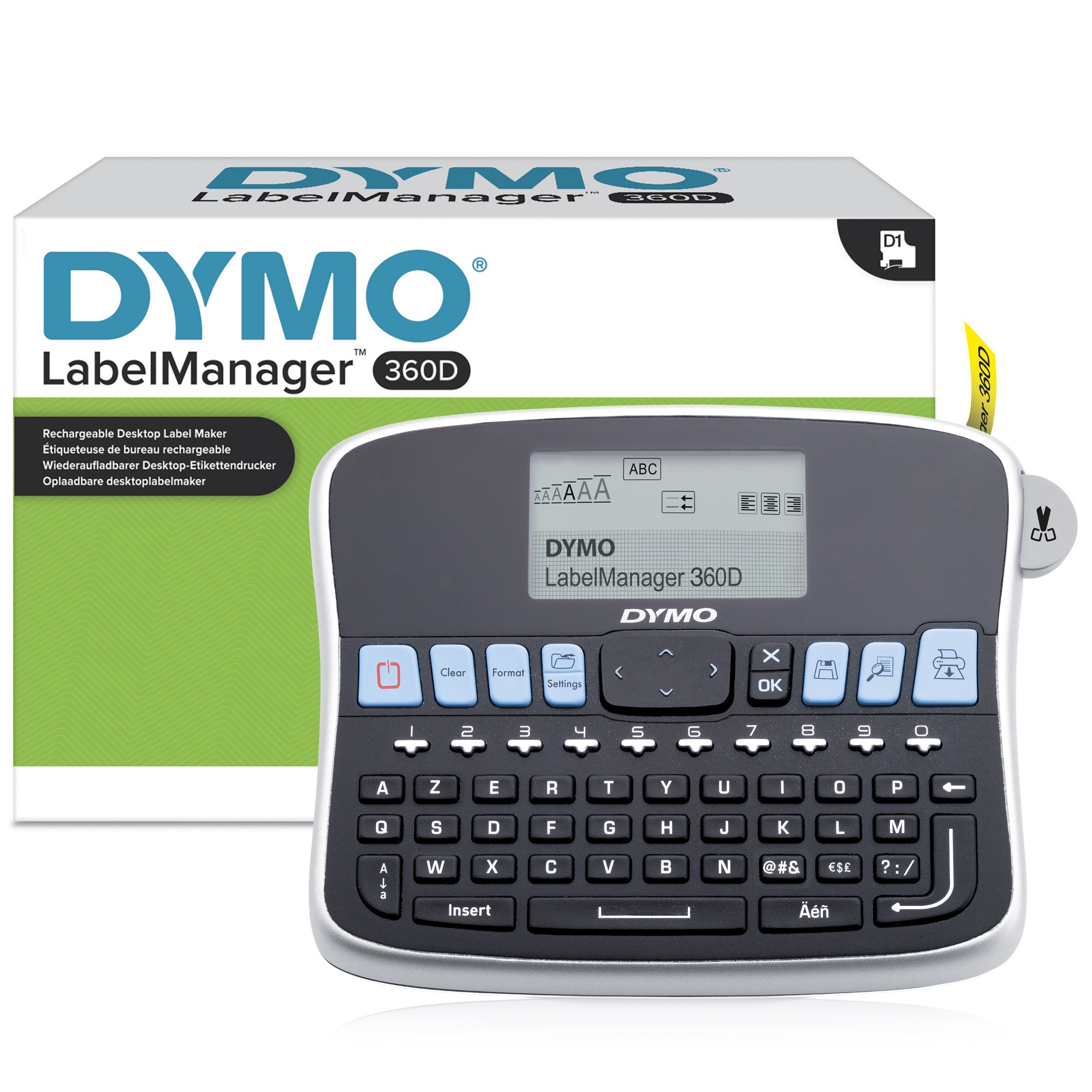 DYMO-etikettskrivare för skrivbordet | Laddningsbar, handhållen LabelManager 360D etikettskrivare | QWERTY-tangentbord och stor skärm | För organisering i hemmet och på kontoret