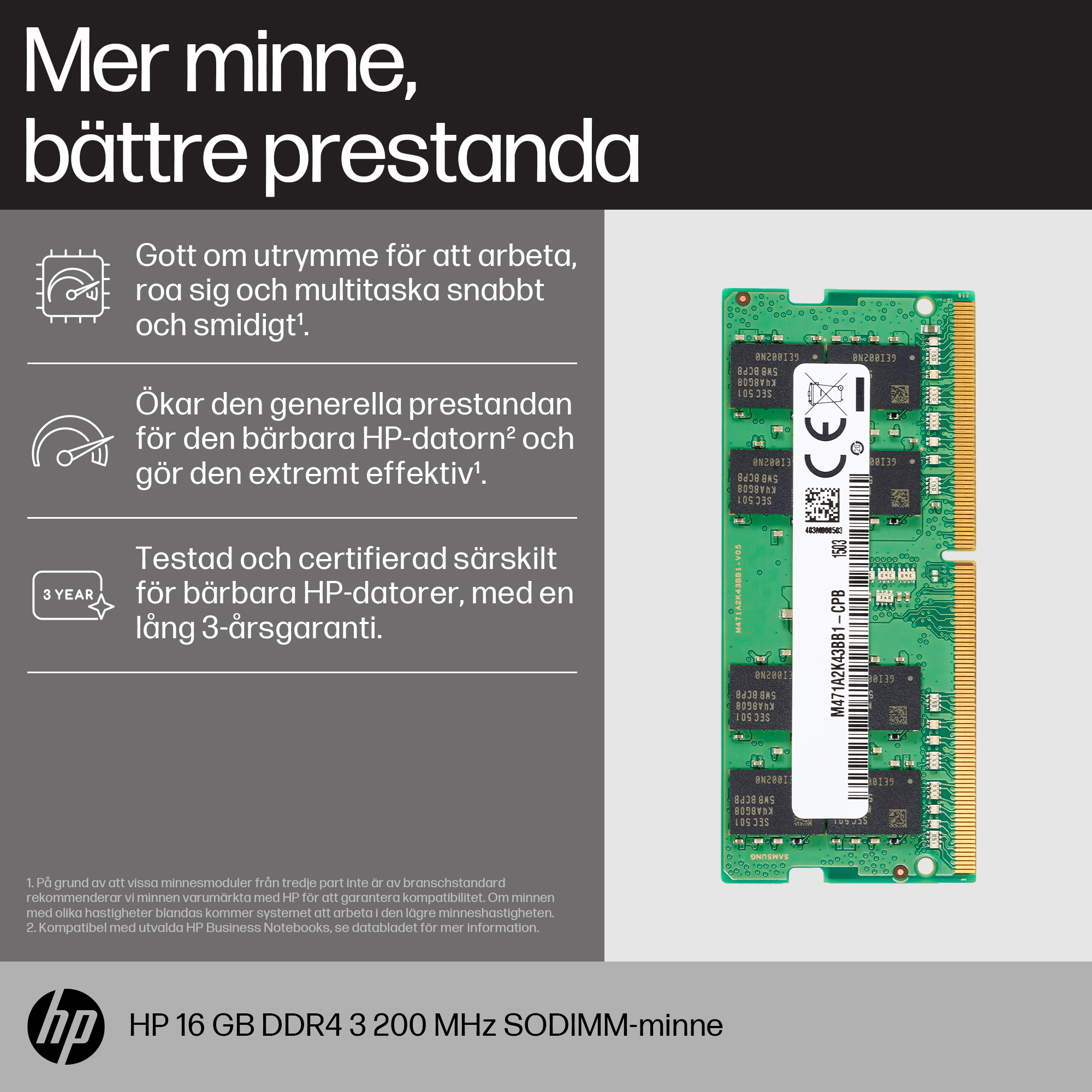 Investera i äkta HP-märkt minne som har testats, certifierats och byggts för bärbara HP-datorer. Robust och pålitlig. Den här produkten kommer till och med med en utökad 3-årsgaranti, bara för säkerhets skull.