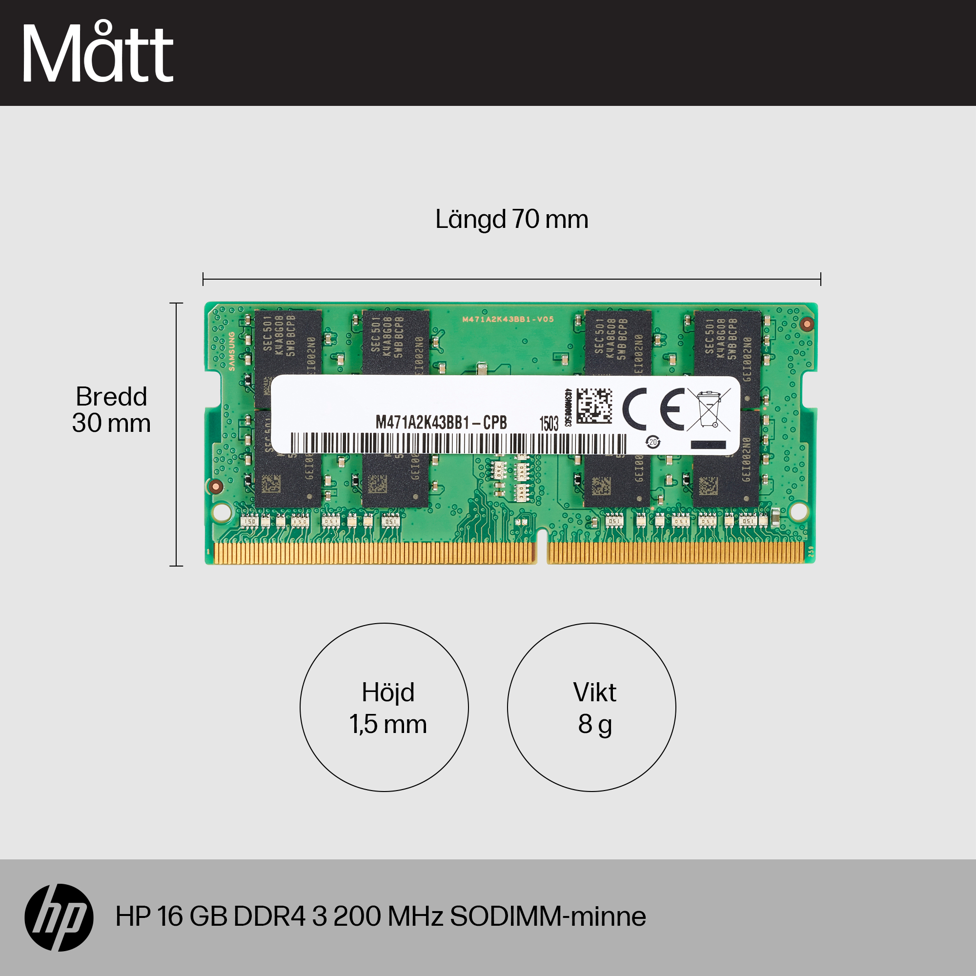 Att uppgradera SODIMM-minnet utökar inte bara ditt RAM-minne, det ökar den bärbara HP-datorns allmänna prestanda – maximal hastighet och produktivitet[1]. DDR4 är dessutom extra effektivt vilket maximerar batteritiden och håller komponenter svala.