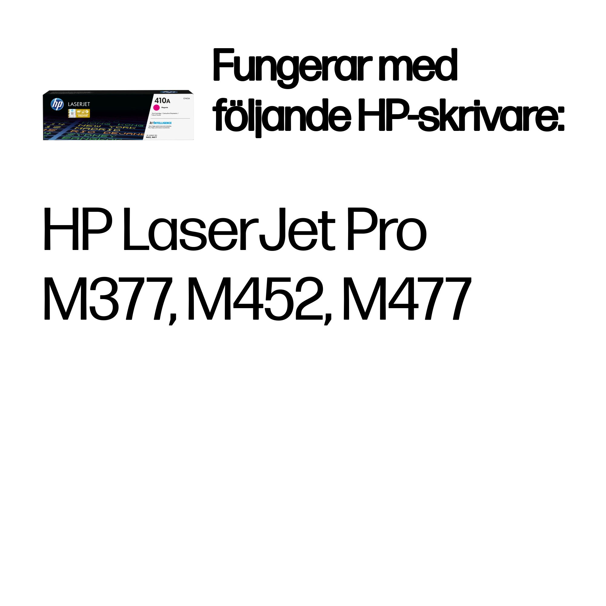 Kompatibilitet | HP 410 tonerkassetter fungerar med: HP LaserJet Pro M377, M452, M477 |