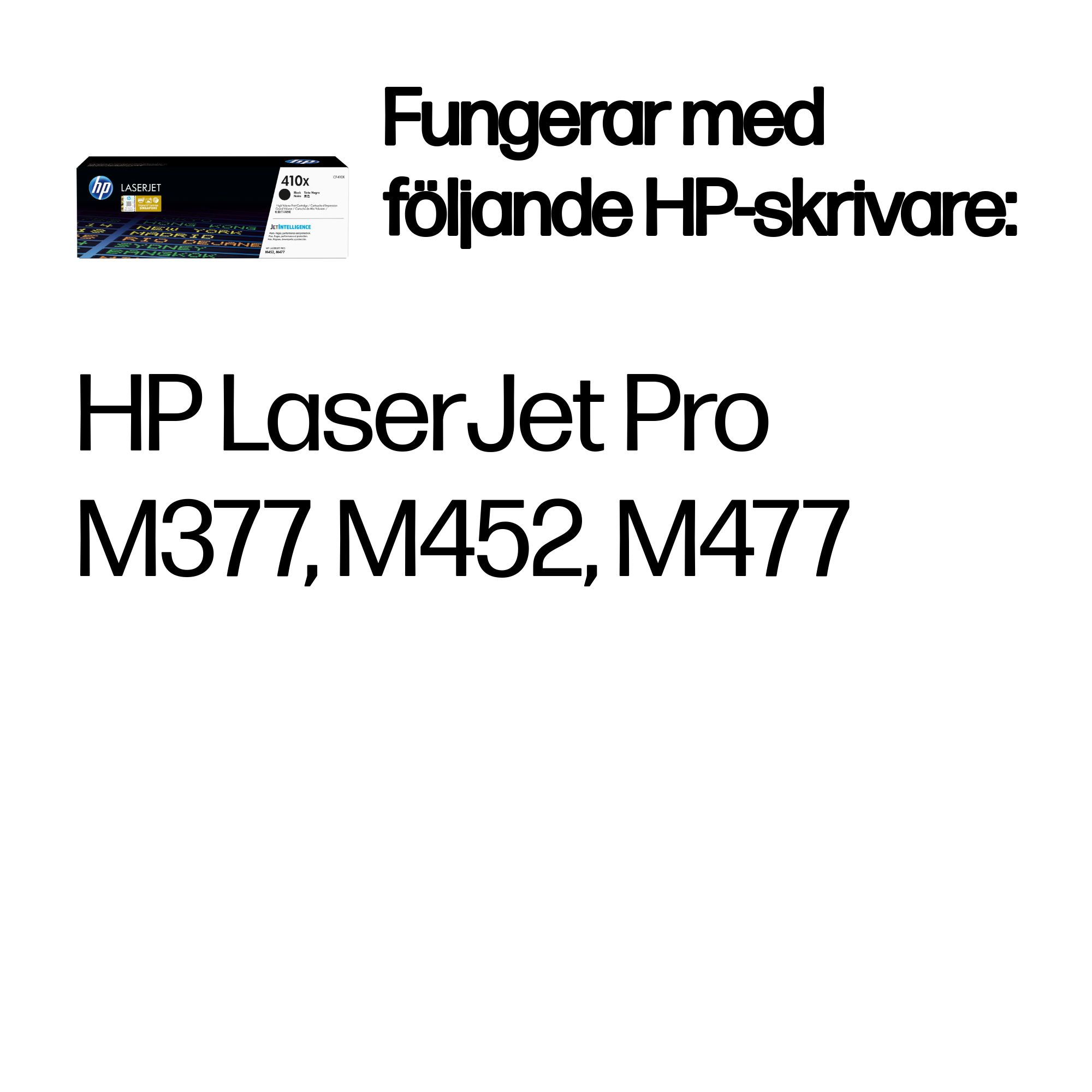 Kompatibilitet | HP 410 tonerkassetter fungerar med: HP LaserJet Pro M377, M452, M477 |