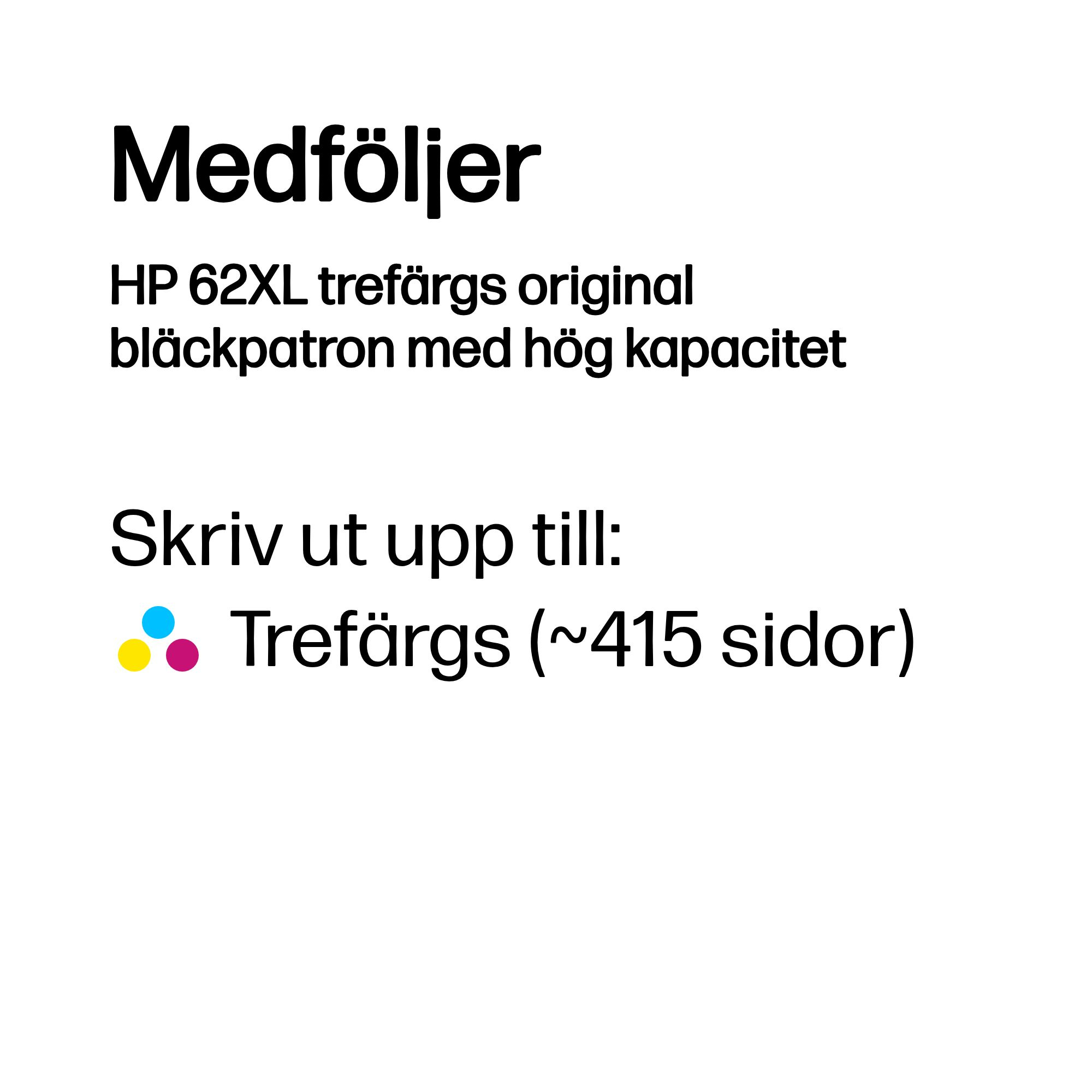 | Kompatibilitet | HP 62-bläckpatroner fungerar med: HP Envy 5540, 5542, 5543, 5642, 5644 HP OfficeJet 200, 250, 5740, 5742, 5744 |