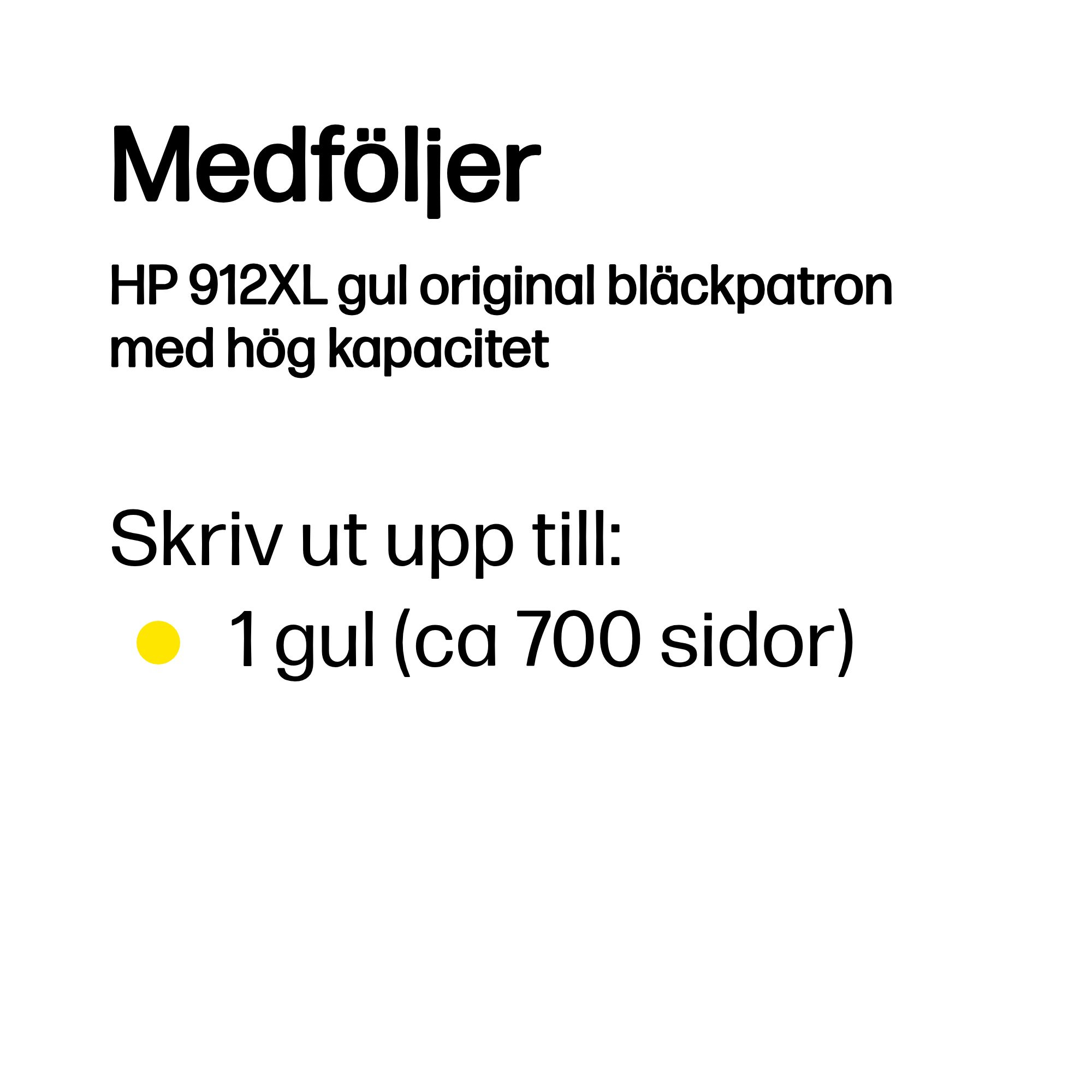 | Kompatibilitet | HP 912-bläckpatroner fungerar med: HP OfficeJet 8010e, 8012, 8014, 8015 HP OfficeJet Pro 8020e, 8022, 8023, 8024, 8025 |