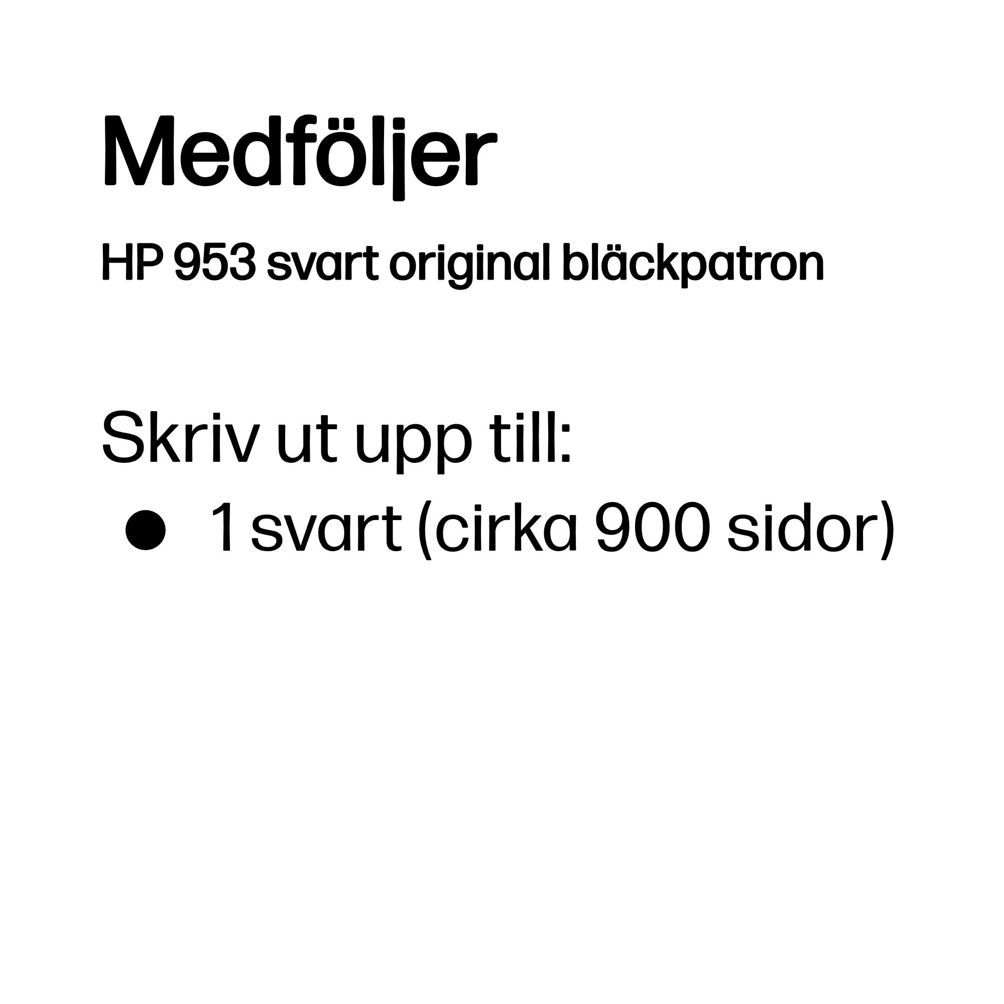 | Kompatibilitet | HP 953-bläckpatroner fungerar med: HP OfficeJet Pro 7720, 7730, 7740, 8210, 8720, 8730 |