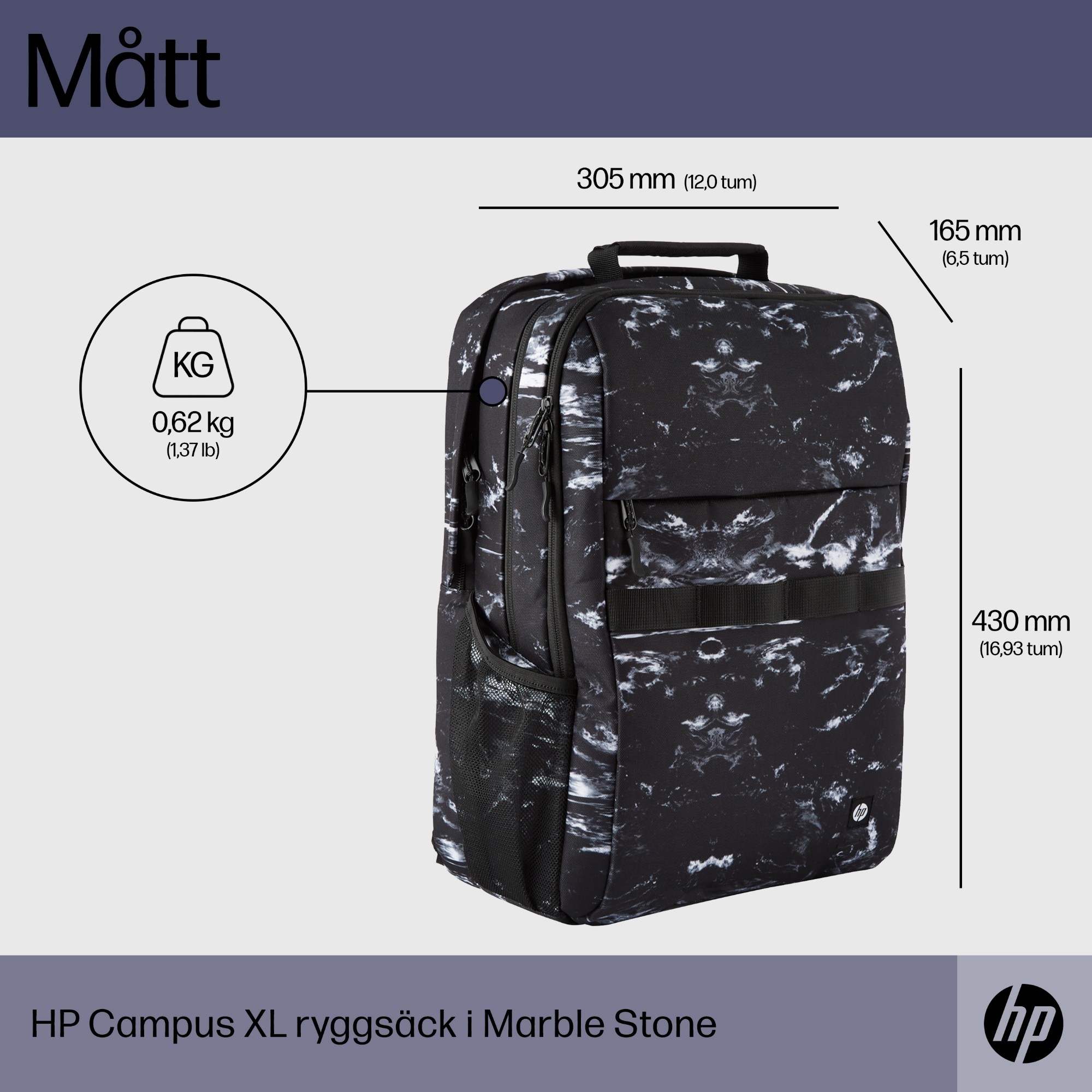 HP Campus XL ryggsäck i Marble Stone
