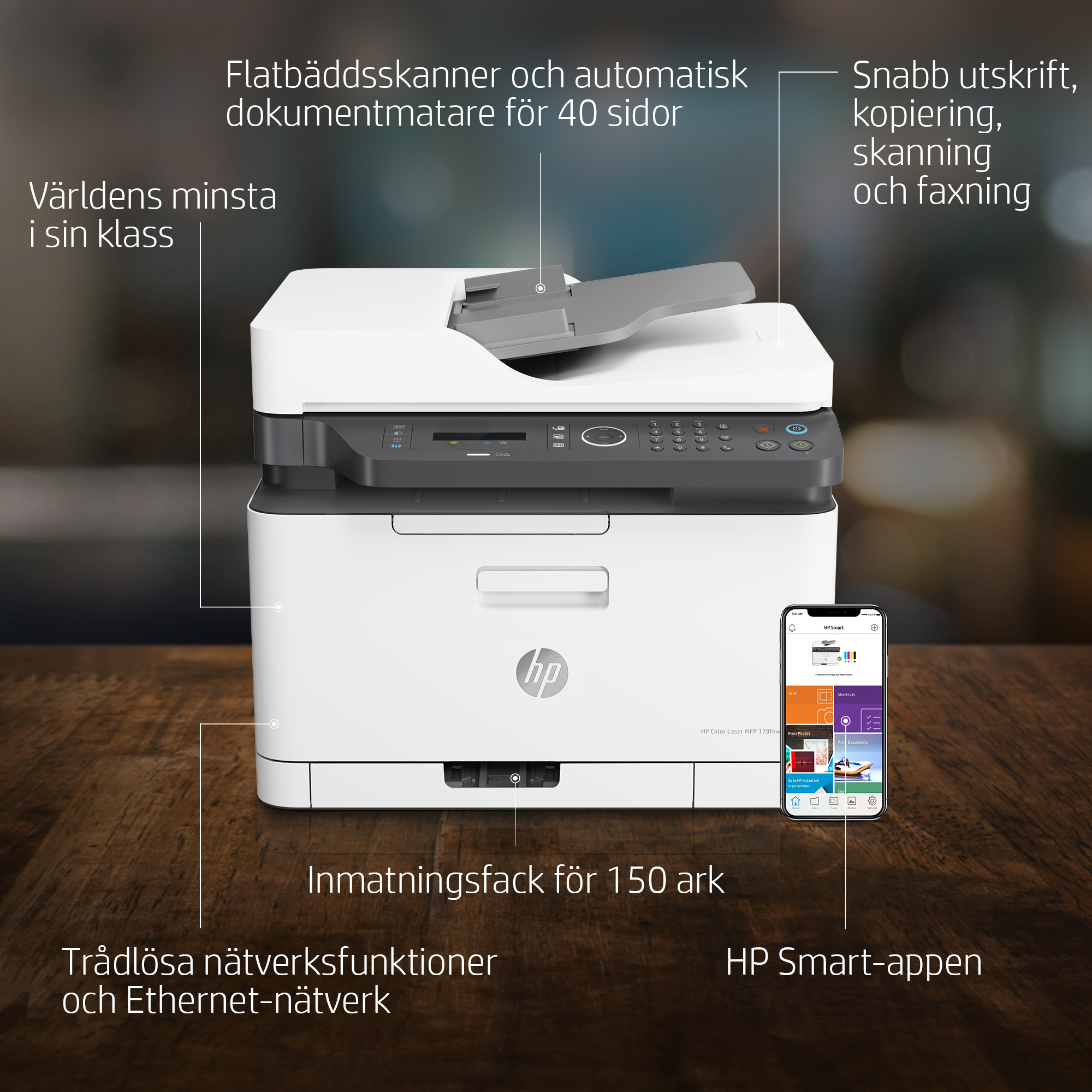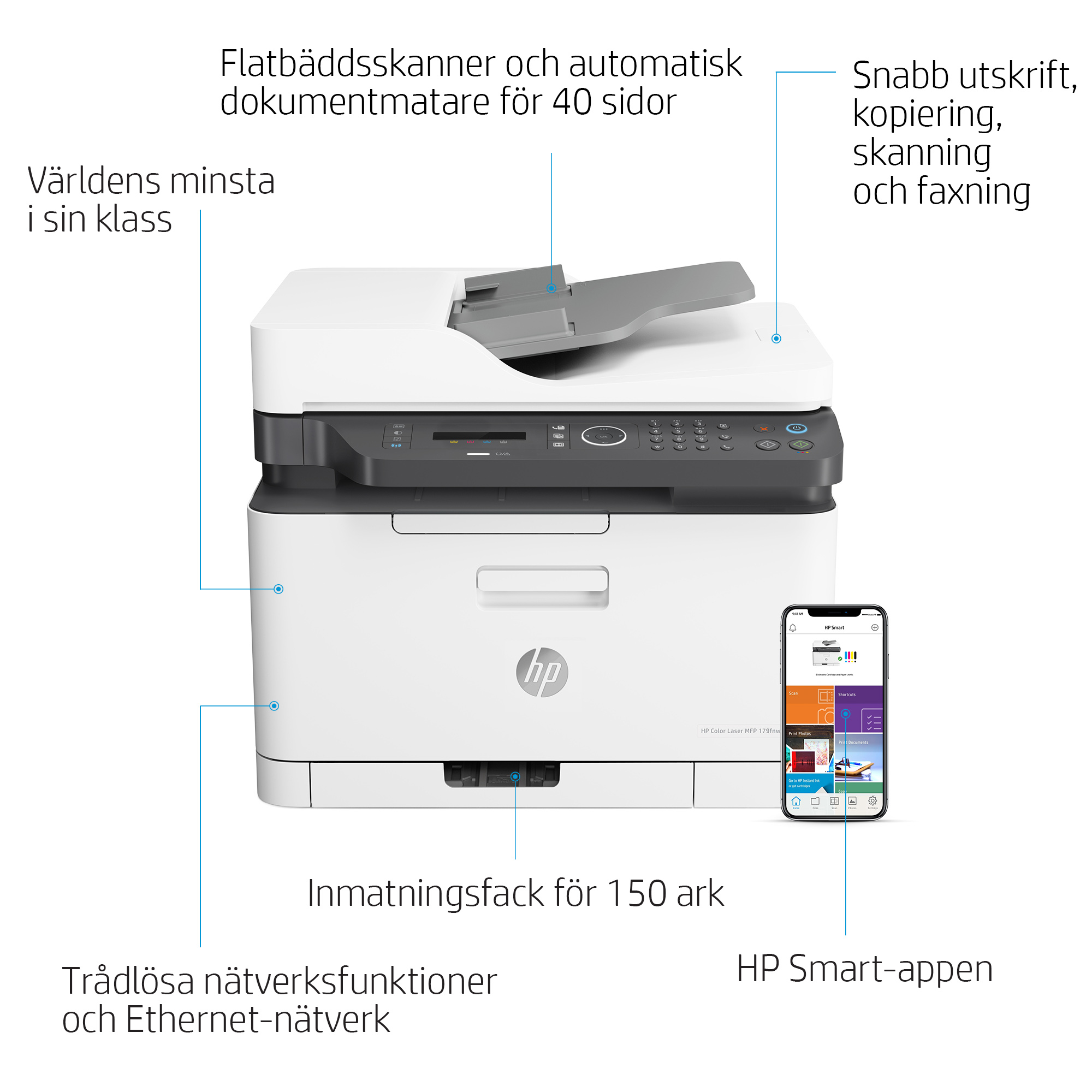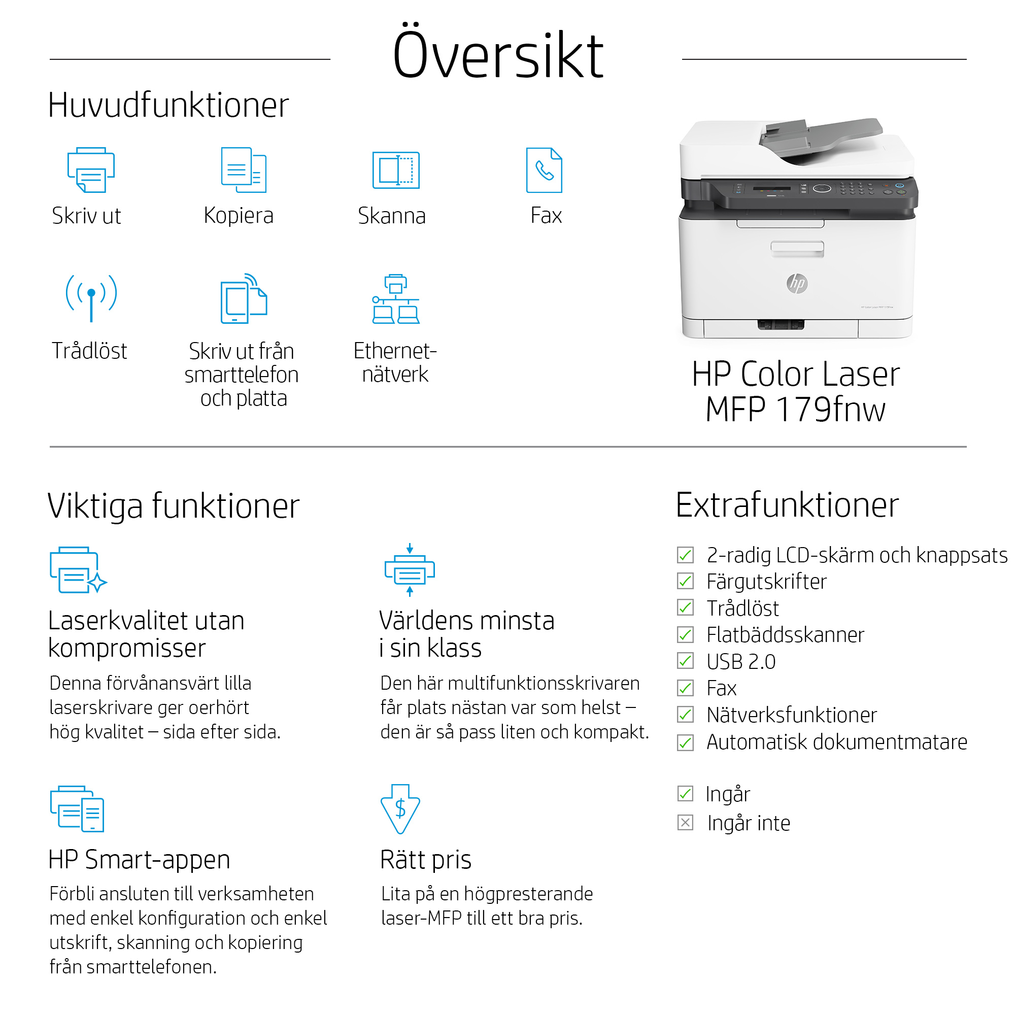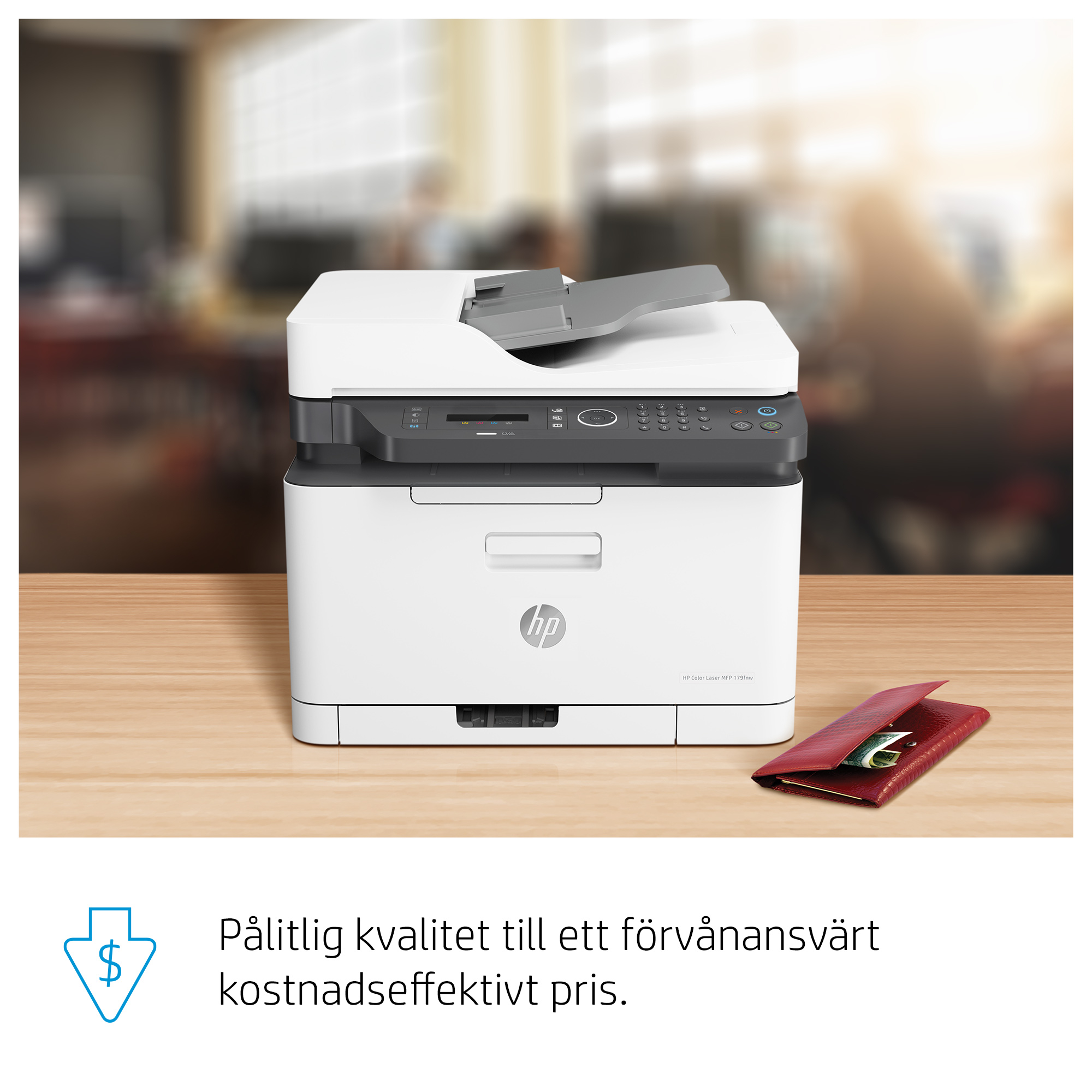 HP Color Laser Laser 179fnw Trådlöst Multifunction Färg Skrivare, Kopiator och skanner; Dubbelsidigt