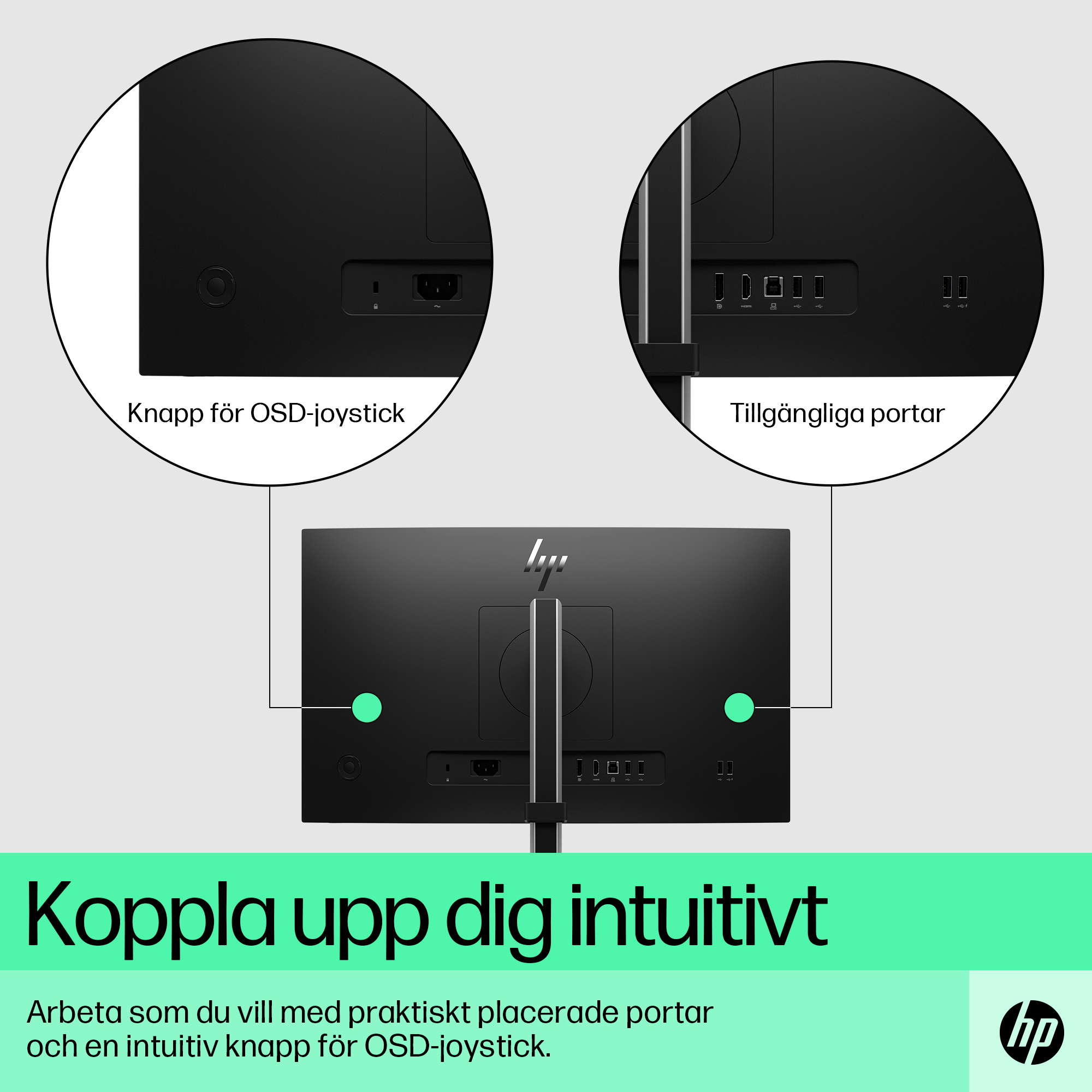 Fler portar innebär fler möjligheter. Med en HDMI-, DisplayPort™- och USB-B-port samt 4 USB-A 3.2-portar kan flera enheter anslutas såsom ett headset och webbkamera.[7]