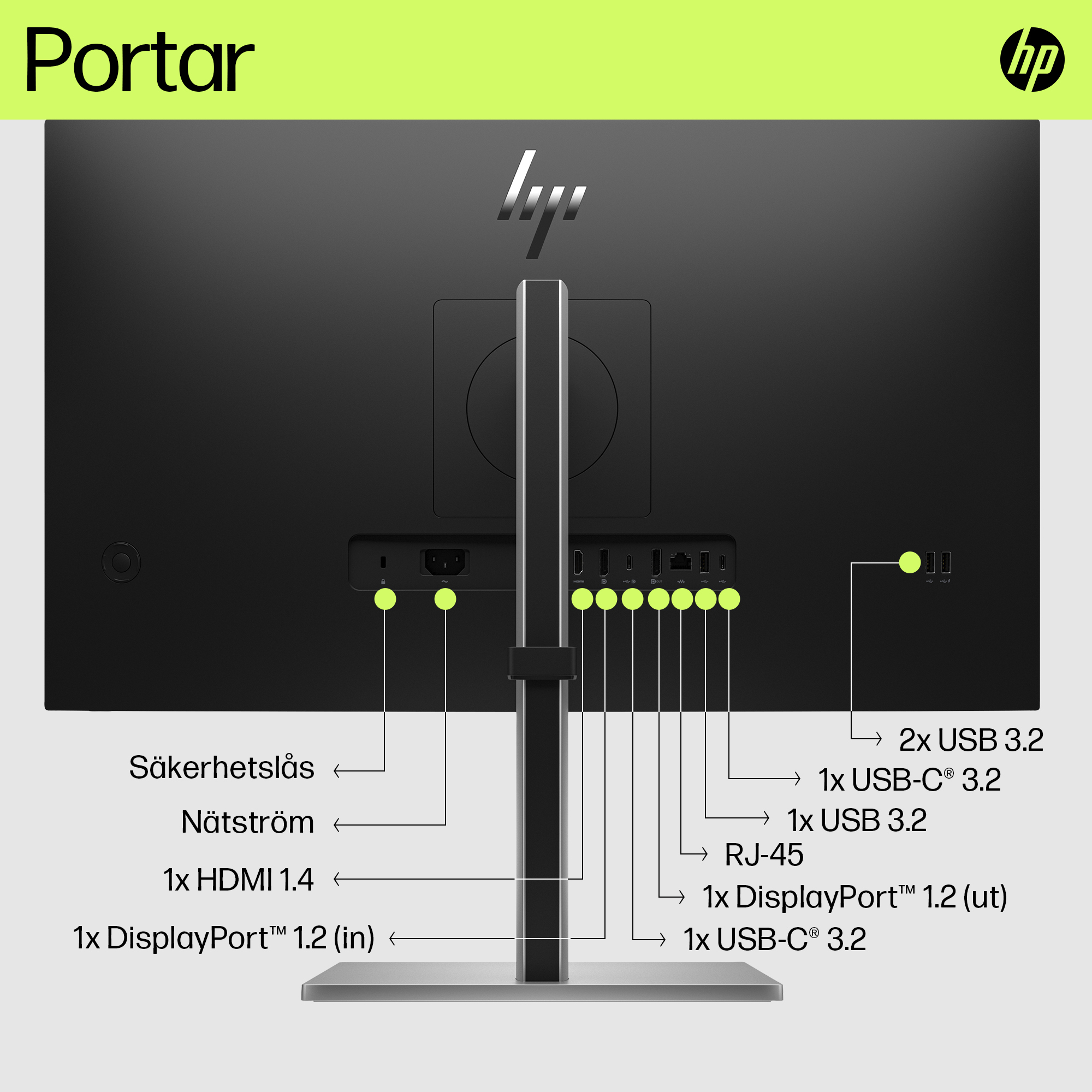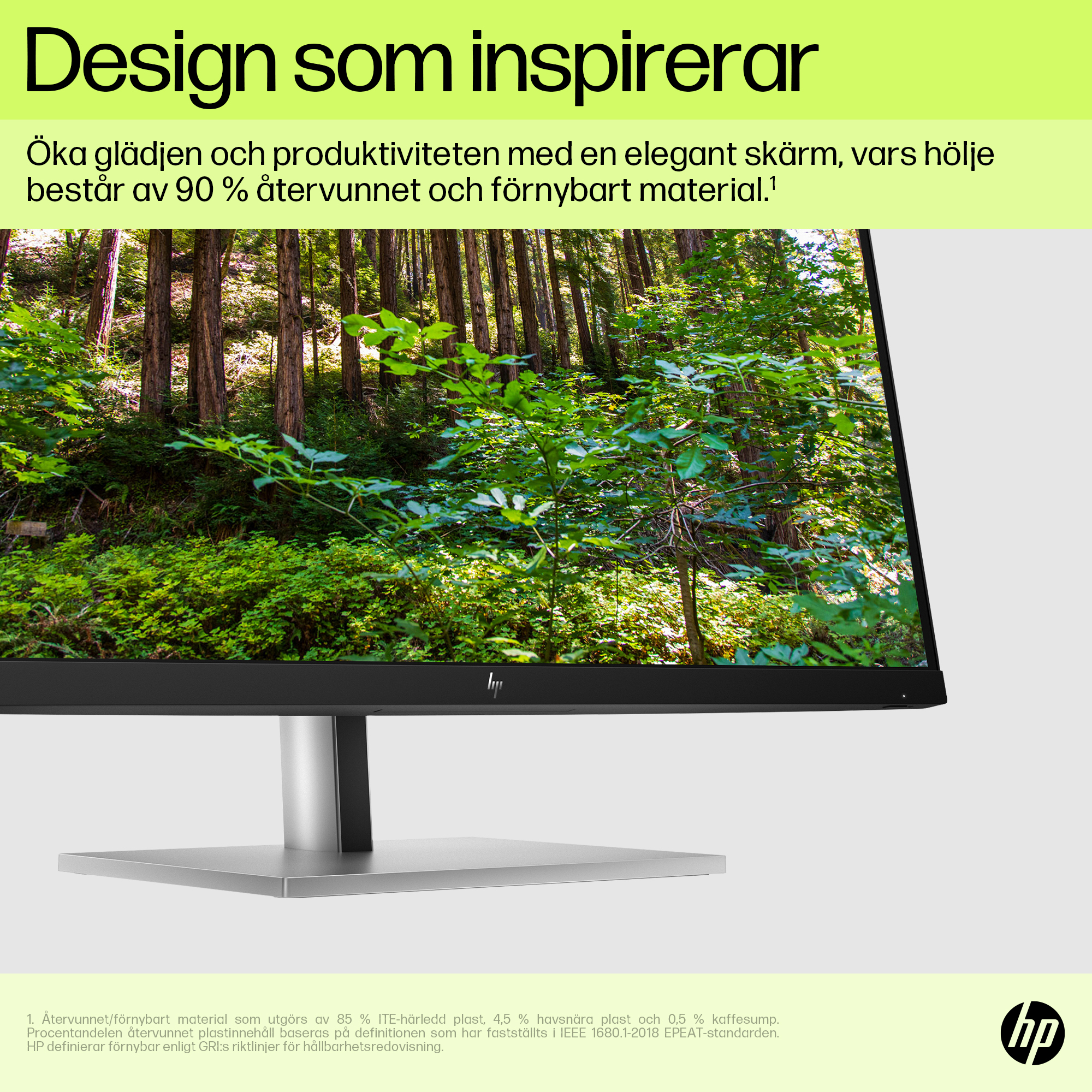 Skärmen HP E27u G5 QHD USB-C är avsiktligt designad för att leverera skarpa bilder och personlig komfort samt skapar en helt ny flexibilitet och prestanda – bara det bästa är bra nog. Elegant design med vår planet i åtanke gör att den här skärmen är den perfekta följeslagaren för både kontoret och hemmet.