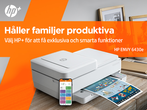 | Hållbara tekniker och material | HP ENVY 6400 Allt-i-ett-serien är tillverkad av återvunna skrivare och annan elektronik – mer än 20 viktprocent i plast. Spara upp till 50 % papper med automatisk dubbelsidig utskrift. HPs originalbläckpatroner har utvecklats för att använda återvunnen plast och tillgodose HPs krävande standarder för kvalitet och tillförlitlighet. |