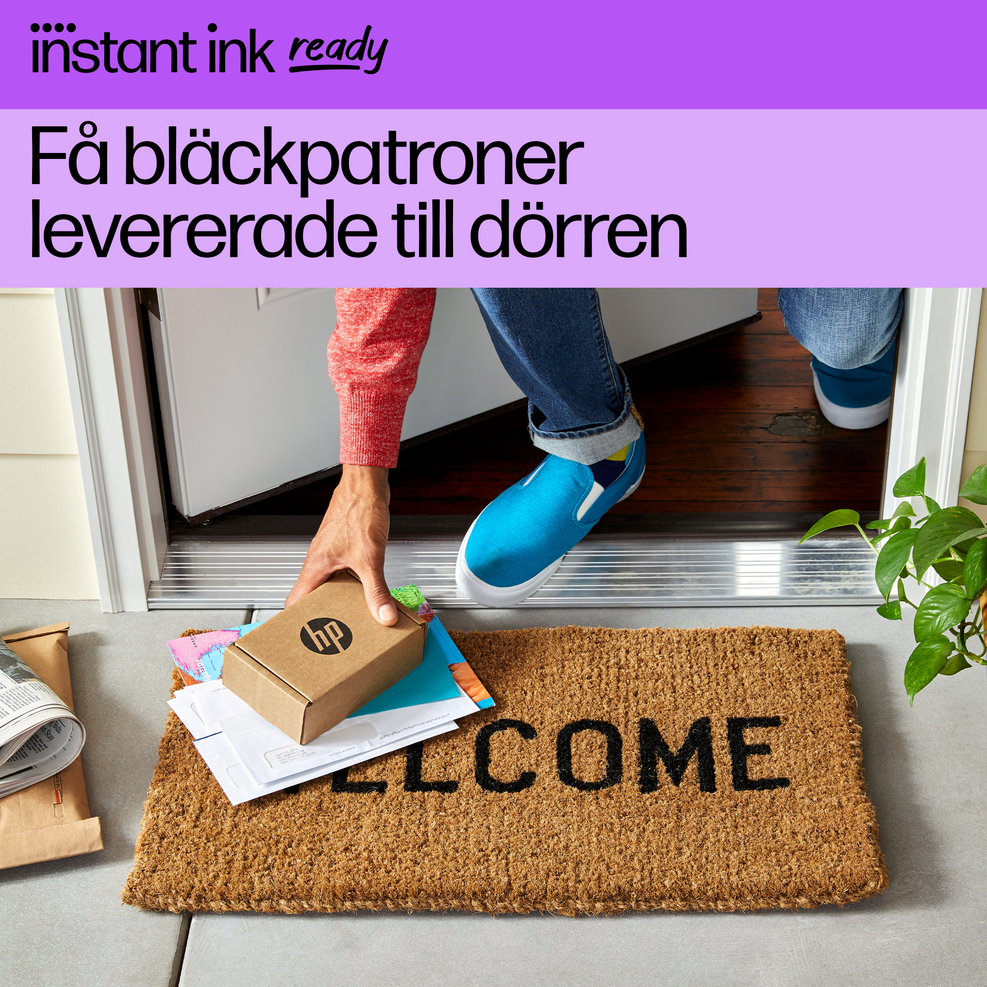 Den här skrivaren är kompatibel med HP+. Välj HP+ under produktinstallationen för att ta del av fördelarna. För att HP+ ska fungera under skrivarens hela livstid krävs ett HP-konto, kontinuerlig anslutning till internet och att du bara använder HP-originalbläckpatroner. Mer information på: http://www.hp.com/plus-faq