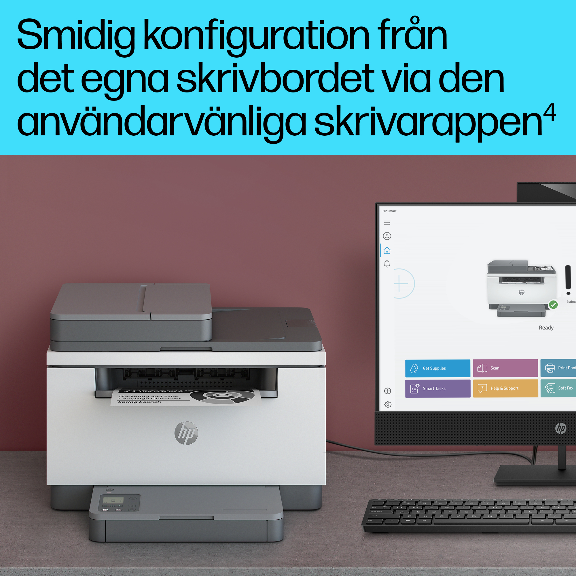 Kom igång snabbt med enkel inställning med vägledning genom varje moment. Ladda bara ned HP Smart-appen, anslut till ett nätverk och dela skrivaren mellan alla enheter.[2]