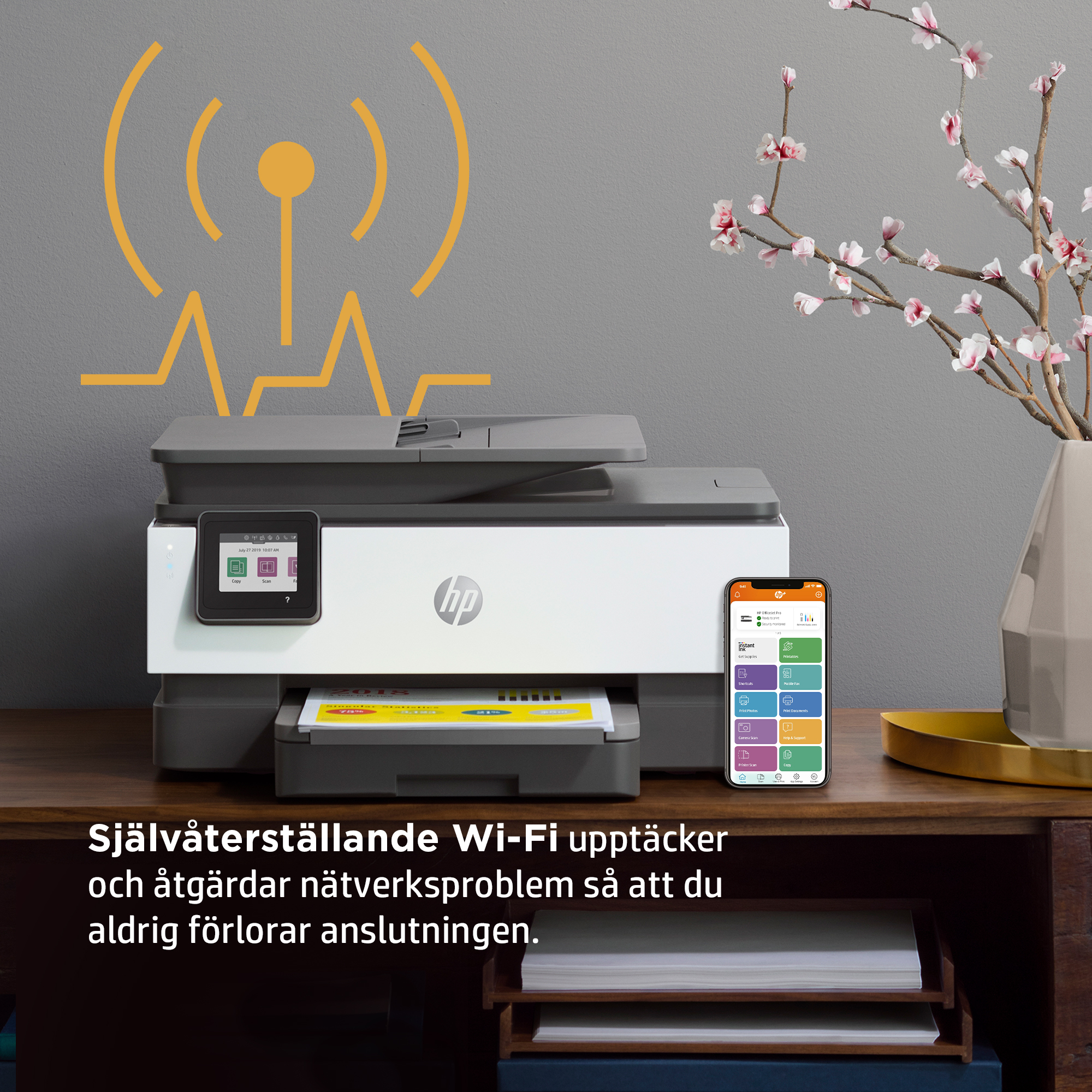En molnansluten skrivare med HP+ är smartare – den håller sig uppdaterad och alltid redo att skriva ut.[9]