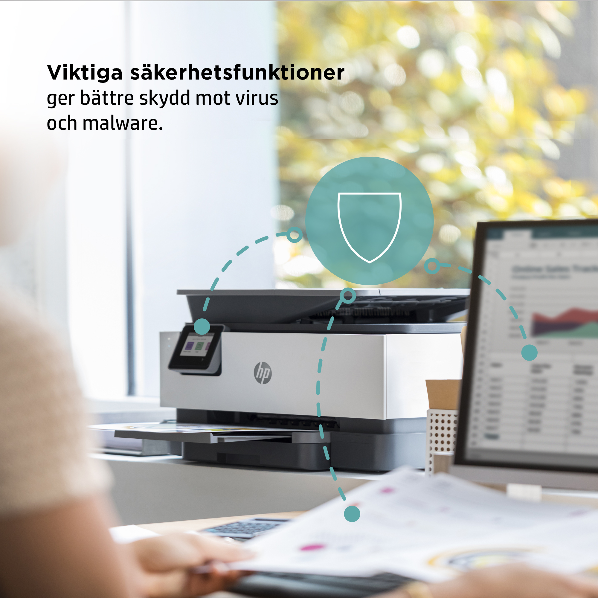 En skrivare med HP+ är redo när du är det, för säkrare och produktivare utskrifter än någonsin.<sup>[10]</sup><sup>[9]</sup>