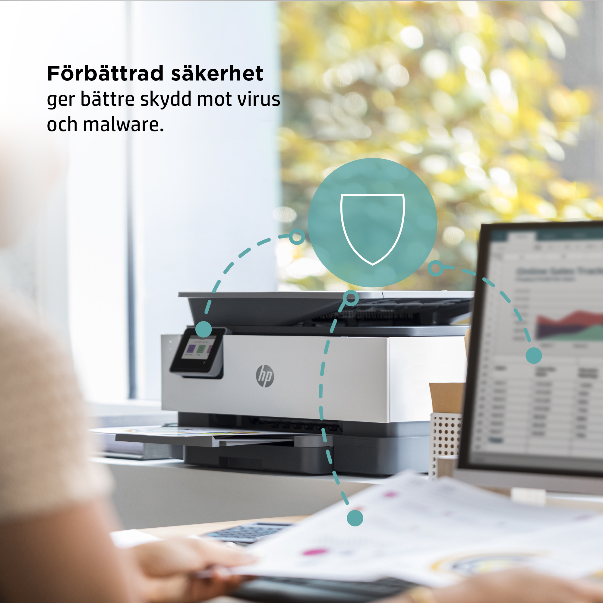 En skrivare med HP+ är redo när du är det, för säkrare och produktivare utskrifter än någonsin.<sup>[10]</sup><sup>[9]</sup>