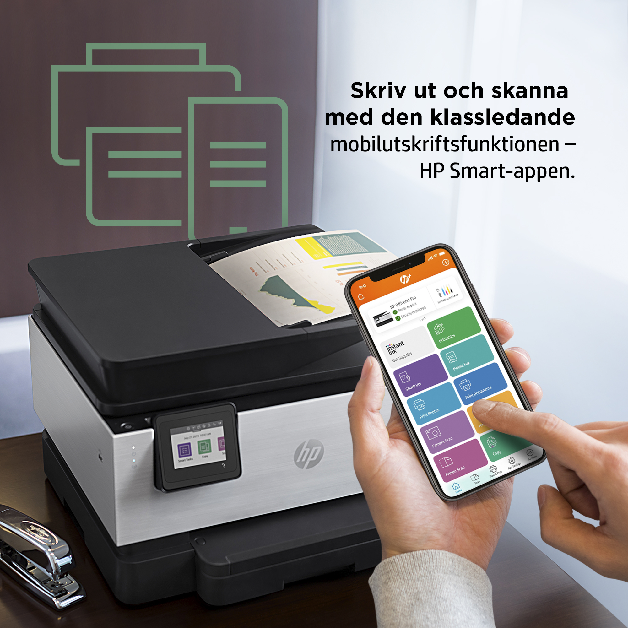 Skriv ut och skanna direkt från handen. Ta del av avancerade produktivitetsfunktioner i 2 år med HP+.[4]