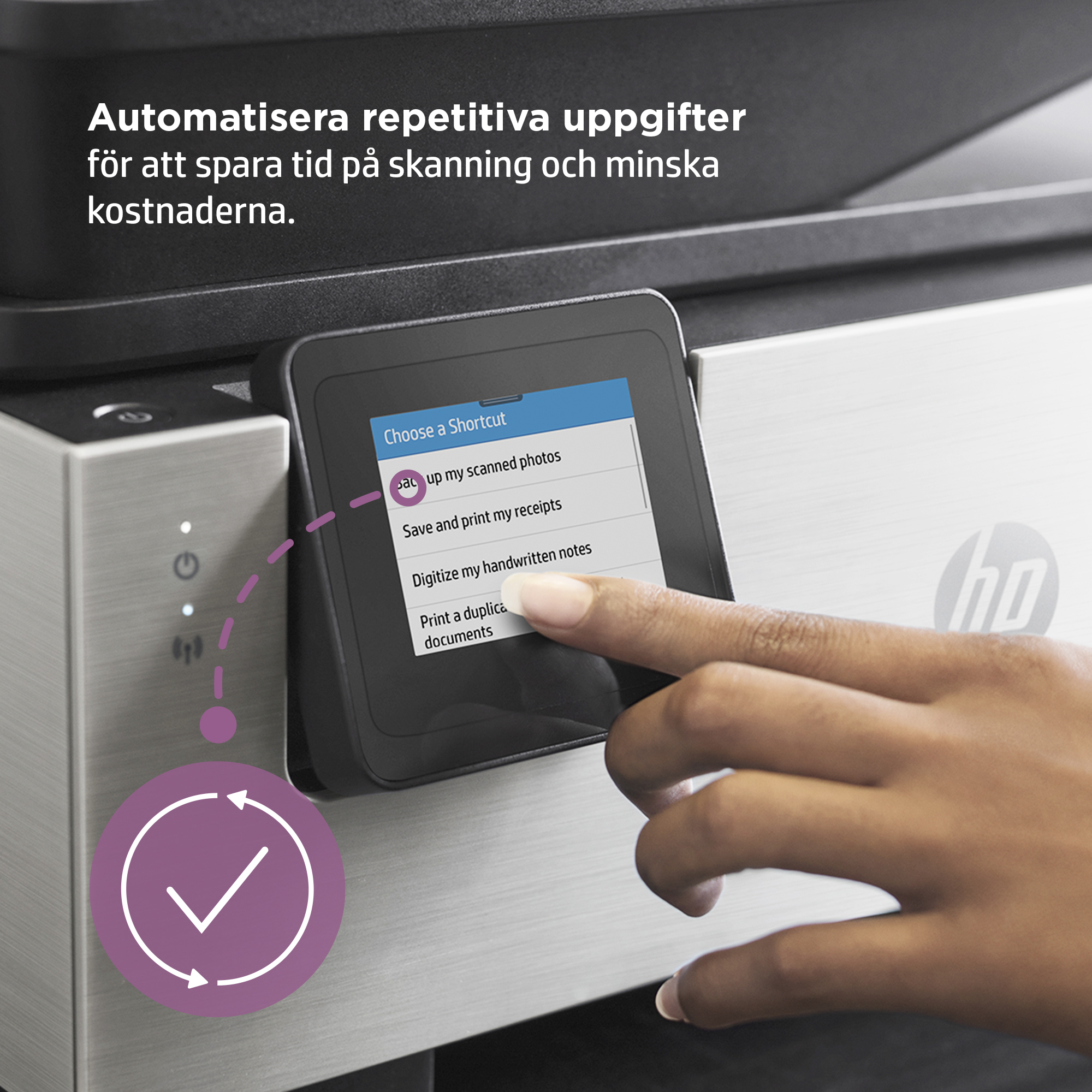 Eliminera steg i repetitiva uppgifter med Genvägar i HP Smart-appen.<sup>[4]</sup>