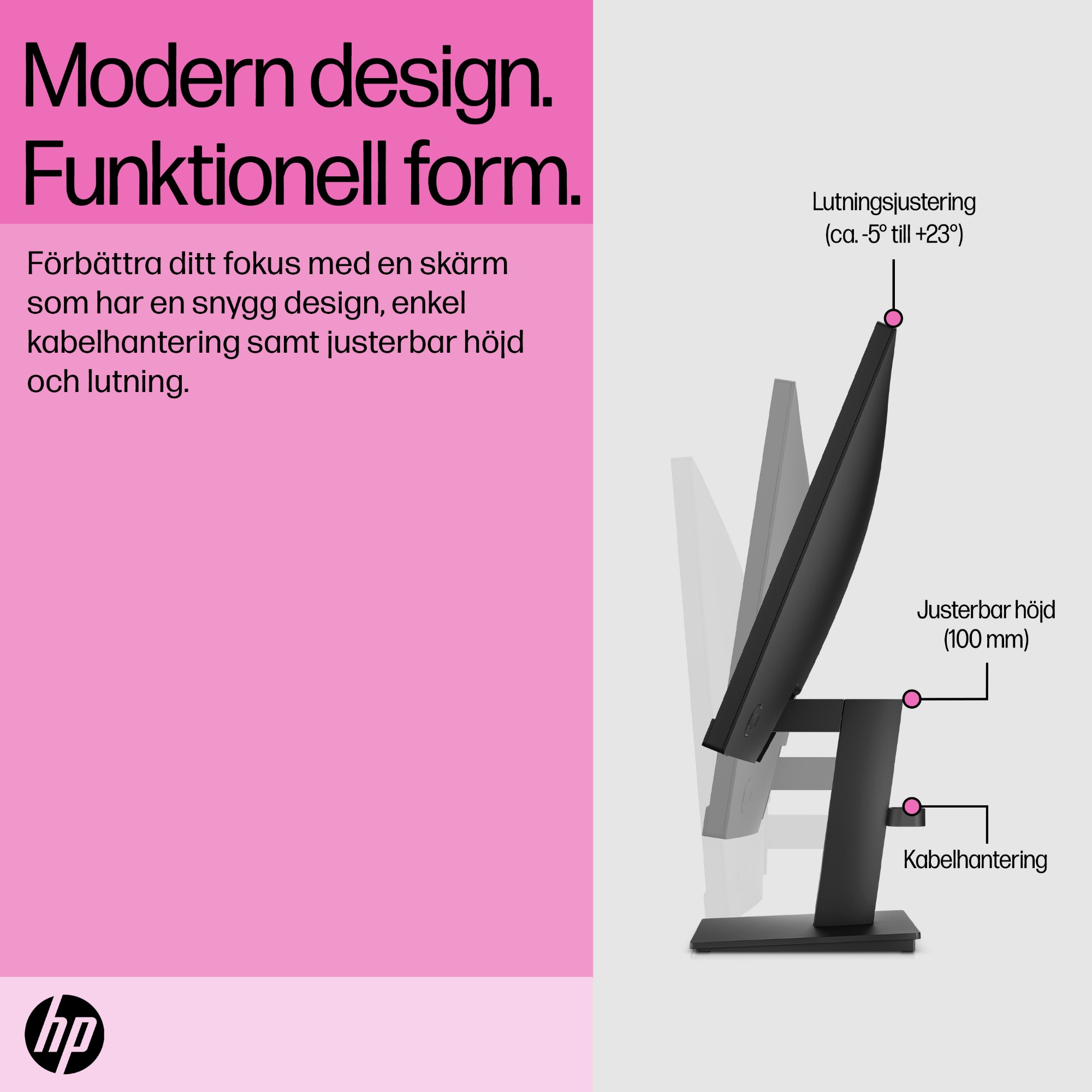 Utöka blickomfånget och produktiviteten med denna FHD-skärm på 23,8 tum (60,5 cm) för arbete såväl hemifrån som på kontoret. Få mer gjort varje dag med denna stilrena skärm som gör hybridarbete enkelt och komplett via en skarp, smidig skärm, inbyggt ljud och enkel design.