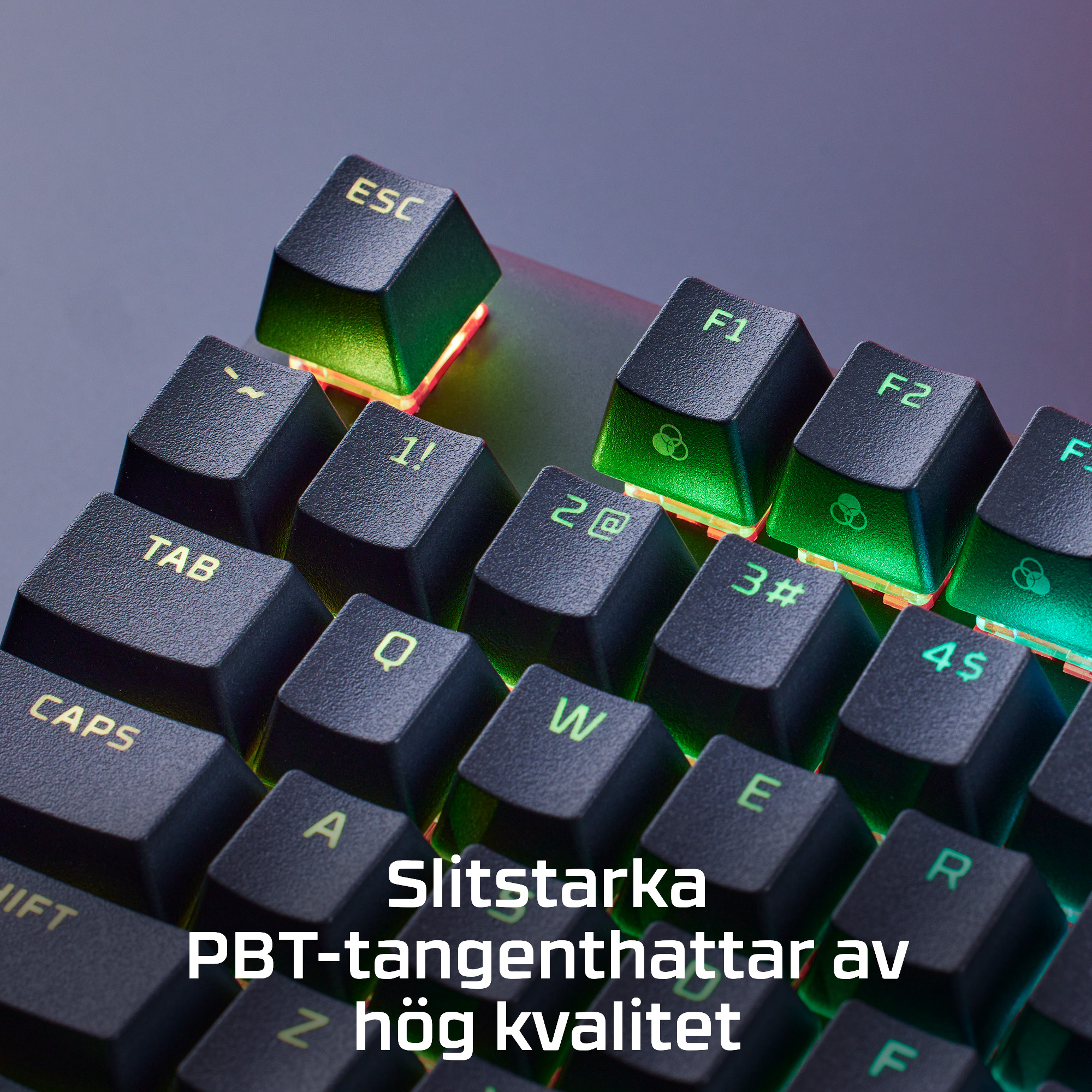 De hållbara och texturerade PBT-tangenterna har även tryck på sidorna vilket undviker kontakt för att garantera långvarig läsbarhet.