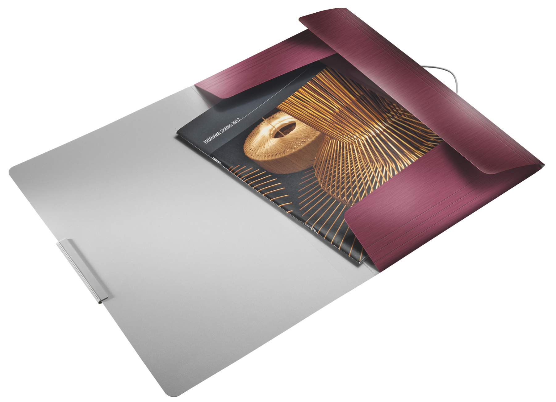 Distinkt, högkvalitativ 3-klaffmapp i PP med en mjuk borstad yta och i ett sofistikerat utbud av färger: polarvit, granatröd, celadongrön, titanblå och sidensvart. Idealisk för daglig förvaring av dokument och lösa papper.
