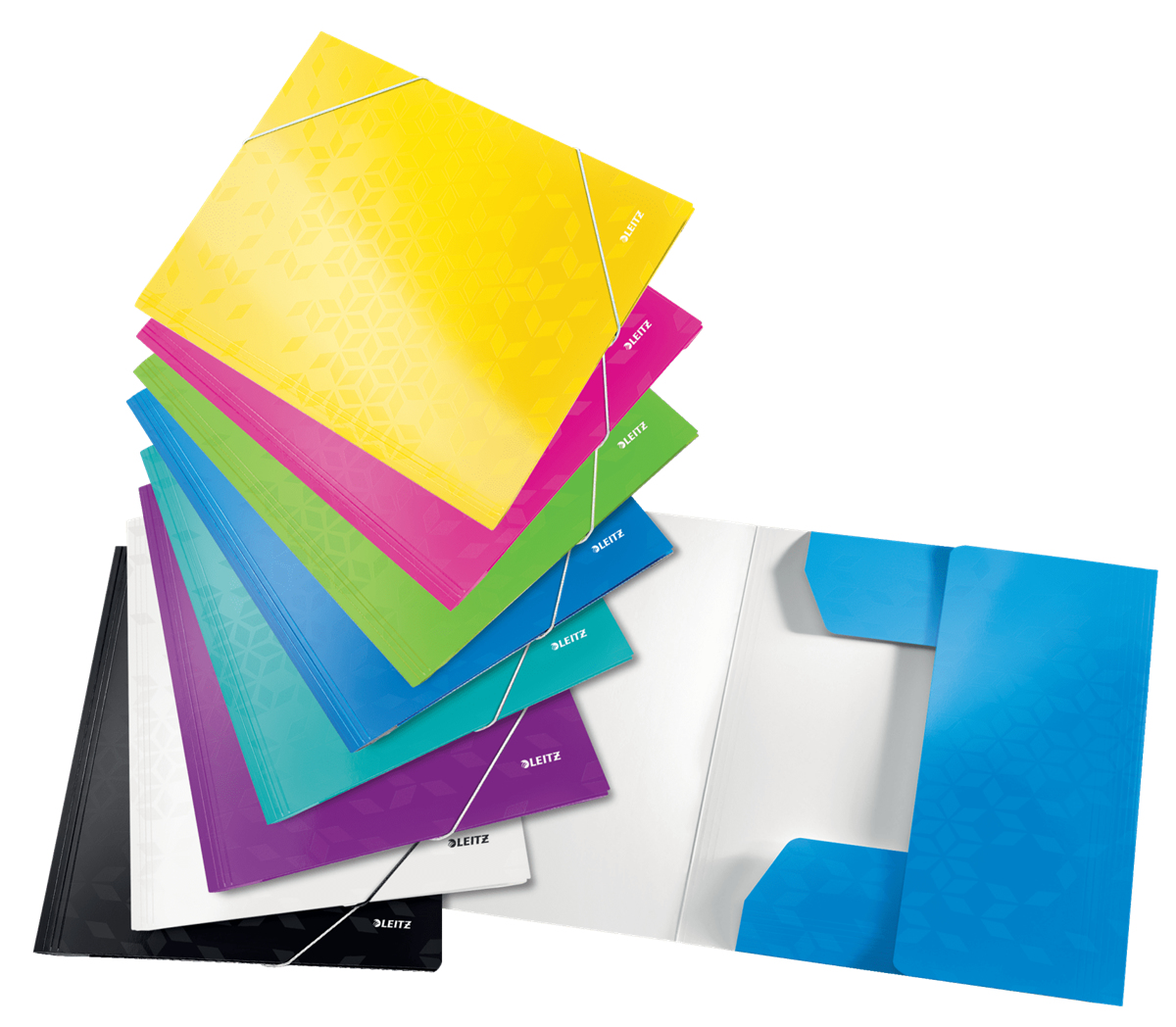 Iögonfallande mapp med 3 klaffar i livliga WOW-färger. Den mönstrade ytan ger mappen en glansig och högkvalitativt utseende och känsla.