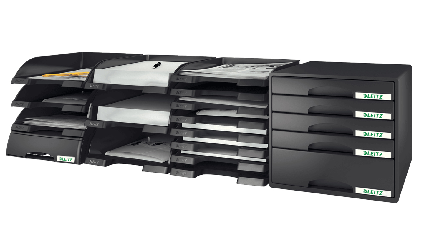 Robust brevkorg av utmärkt kvalitet. En del av Leitz Plus modulära brevkorgssystem där alla 3 storlekarna kan staplas på varandra vertikalt eller "förskjutet bakåt". Design och färg-koordinerad med Leitz Plus skrivbord- och arkiveringssortiment gör dessa till en perfekt matchning.