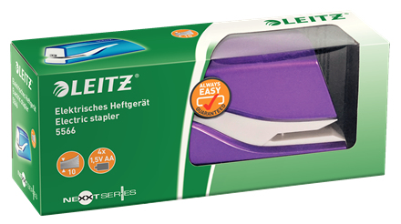 Enkel manövrering, idealisk för frekvent användning. I slående WOW-färger som låter din personlighet lysa igenom. Batteridriven för bekväm häftning. Leitz Electric häftklamrar E1 säkerställer perfekt häftning varje gång.