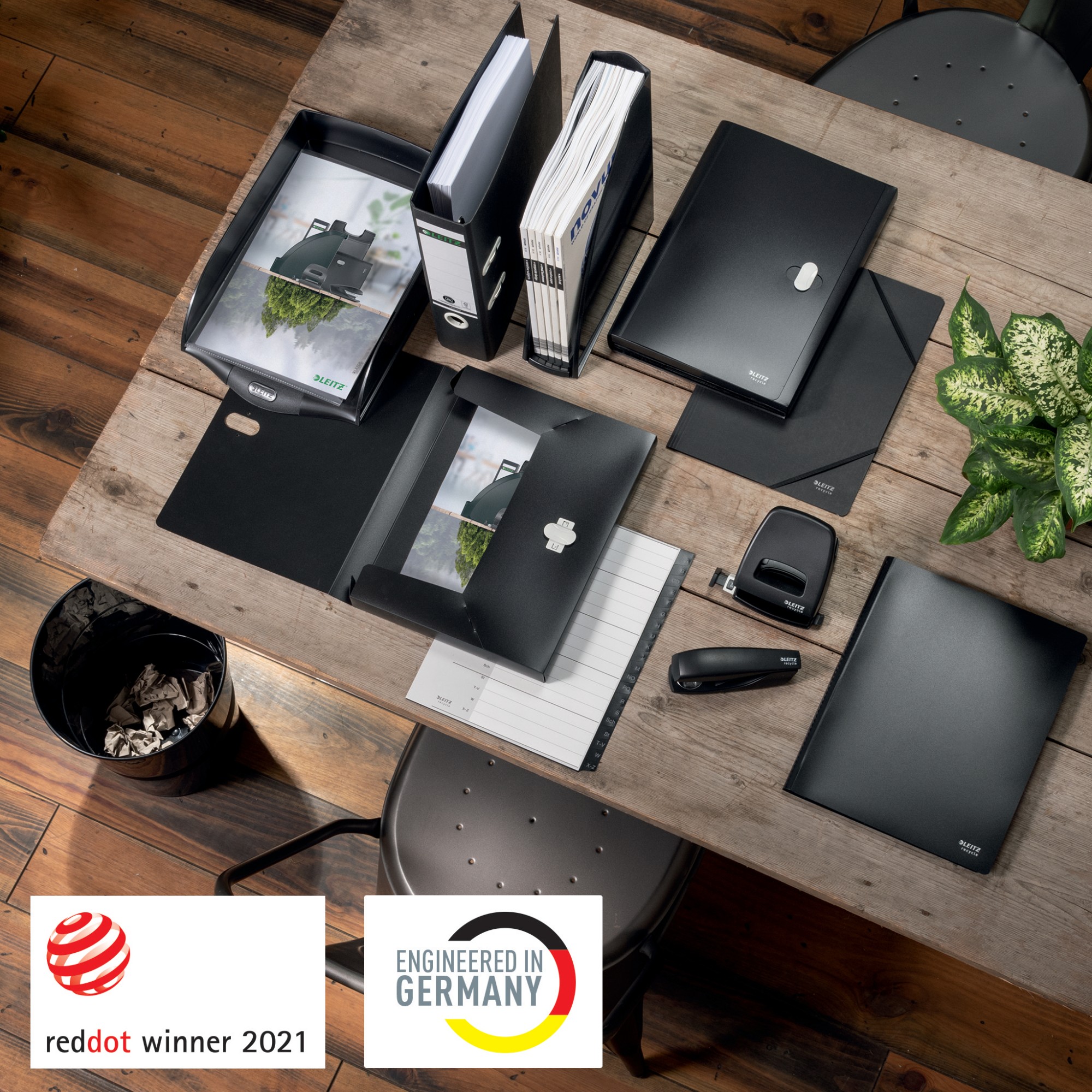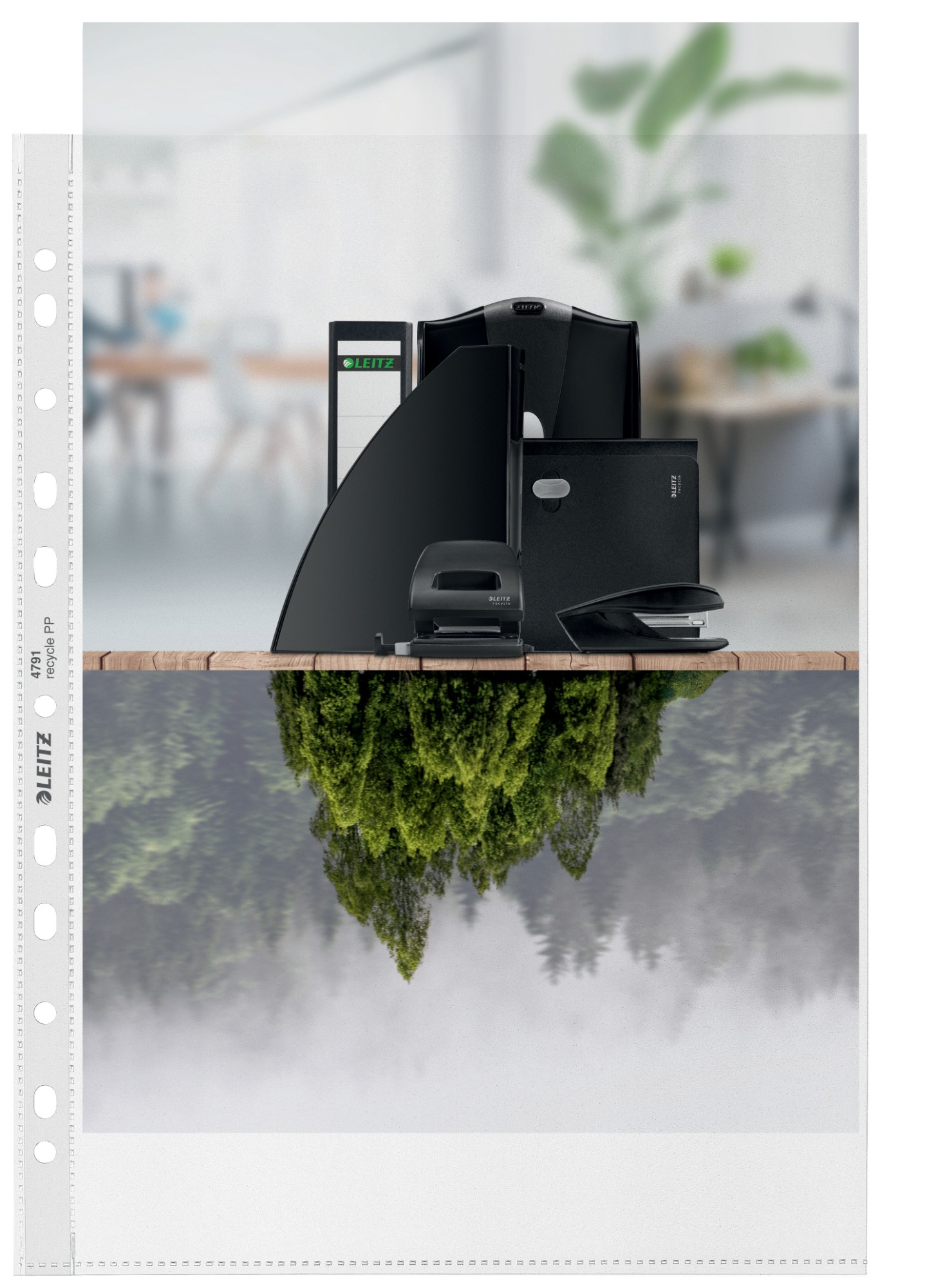 En stilren dokumentficka av högsta kvalitet i A4-format, skyddar dokument när du är på språng och gör det enkelt att organisera papper på jobbet och hemma. Den multiperforerade remsan gör att du enkelt kan förvara dokument i pärmar. Tillverkad av 90% återvunnen plast (före konsumtion), externt granskad och certifierad av UL, 100% återvinningsbar. Den här starka och praktiska fickan i genomskinlig plast är gjord för att hålla länge och kompletterar andra produkter från Leitz Recycle-sortimentet. Miljövänliga och moderna kontorsprodukter som passar bra hemma och på kontoret. Med det miljövänliga Recycle-sortimentet från Leitz kan du både förbättra din kontorsmiljö - och miljön på vår planet.