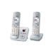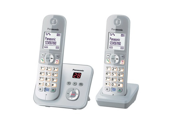 Panasonic KX-TG6823. Modell: DECT-telefon. Högtalartelefon, Telefonbokskapacitet: 120 poster. Namn och uppringnings-ID. Skärm diagonal: 4,57 cm (1.8"). Produktens färg: Silver, Vit. Antal telefoner som ingår: 3